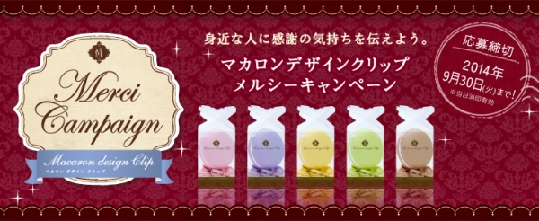 ライオン事務器は、2013年11月の発売以来、好評を得ている「マカロンデザインクリップ」の購入者を対象とした「マカロンデザインクリップ メルシーキャンペーン」(期間:7月15日~9月30日)を実施する。
