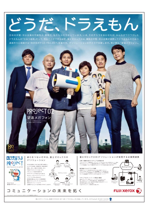 富士ゼロックスは、日本の未来を創る原動力とも言える中堅・中小企業が持つ“技術”や“ノウハウ”を組み合わせ、国民的人気まんが「ドラえもん」の「ひみつ道具」づくりにチャレンジする「四次元ポケットPROJECT」第二弾の広告展開をスタートした。