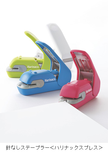 コクヨS&Tは、金属歯で紙を圧着するプレスロック式を新たに採用し、穴を開けずに5枚の紙がとじられる新シリーズ「針なしステープラー<ハリナックスプレス>」発売を記念し『針不要! 穴をあけずにプレスで「美綴じ」キャンペーン』スタートする。