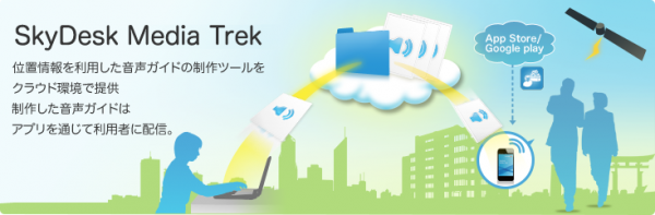 「SkyDesk Media Trek」は、GPS(全地球測位システム)と連動した音声ガイド付きコンテンツを個人のスマートフォンで利用するためのクラウドサービスで、小倉百人一首文化財団は、中核施設である時雨殿やその周辺の約100か所の観光スポットを紹介する「嵯峨・嵐山めぐり」で本サービスを採用し、利用者に無料で提供。