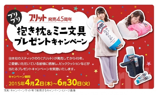 コクヨS&T㈱は、スティックのりプリットの日本発売45周年を記念して6月30日まで、プリットのデザインを忠実に再現したビーズクッション「プリプリ抱き枕」などのプリットグッズが当たる「プリプリ抱き枕&ミニ文具プレゼントキャンペーン」を実施。