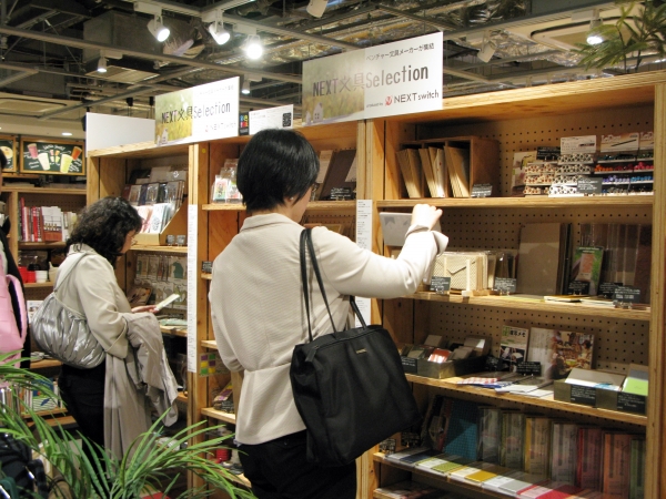 「NEXT文具セレクション」は、日本のベンチャー文具メーカーから選りすぐりの商品(棚4本分)を紹介する。