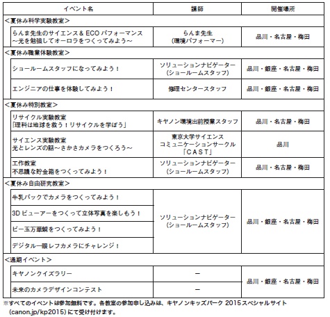 各教室の参加申し込みは、キヤノンキッズパーク2015スペシャルサイト