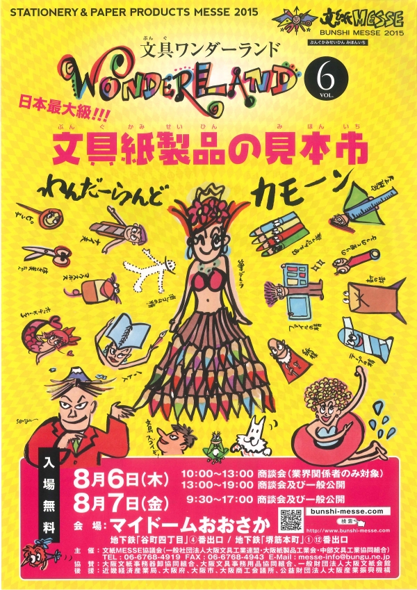 文紙MESSE協議会(一般社団法人大阪文具工業連盟・大阪紙製品工業会・中部文具工業協同組合)主催による「文紙MESSE2015・文具ワンダーランドⅥ」が、8月6、7日、マイドームおおさかで開催される。