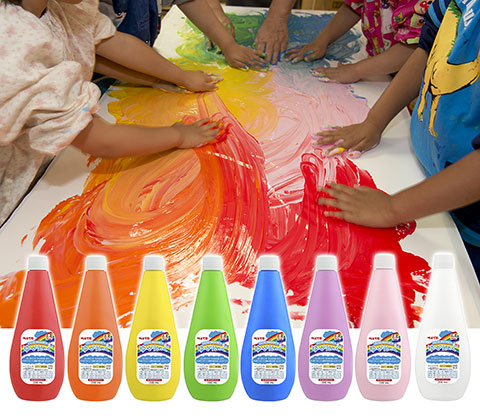 「ゆびえのぐ」は、幼稚園や保育園、小学校で行われているフィンガーペイントのためのえのぐ。 手や指で直接触る活動に使われる。日本にはない規格、EUのフィンガーペイント安全性規格EN71-7基準に適合させた。