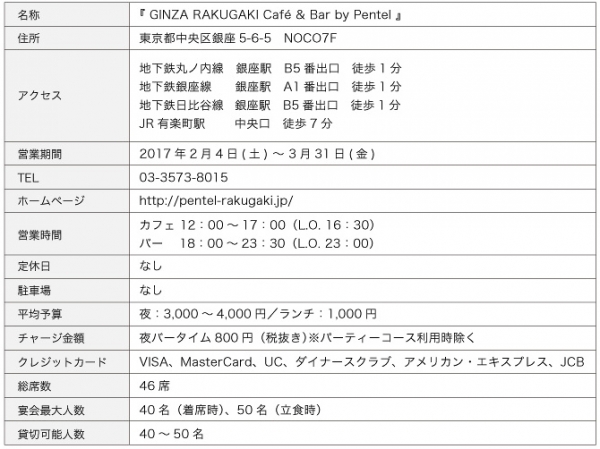 ぺんてるは、『GINZA RAKUGAKI Café & Bar by Pentel』を2月4日(土)~3月31日(金)の期間限定でオープン。