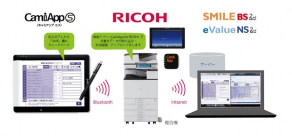 コクヨ㈱と㈱リコーは、コクヨが2014年9月から発売しているデジタルノート「CamiApp S」のデータの業務システムへの取り込みをリコー製複合機で行うことができる新アプリケーション「CamiApp for RICOH」を4月17日からリリースした。