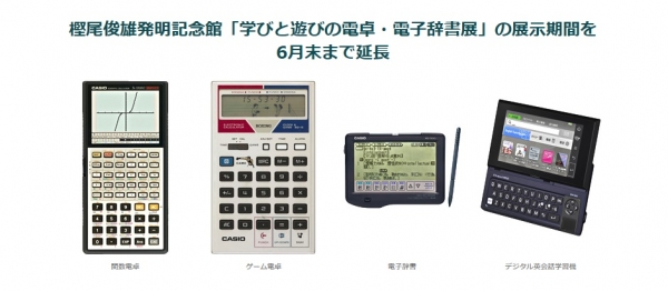 樫尾俊雄記念財団は「樫尾俊雄発明記念館」での特別展示「学びと遊びの電卓・電子辞書展」の 開催期間を 6月 30日(金)まで延長した。