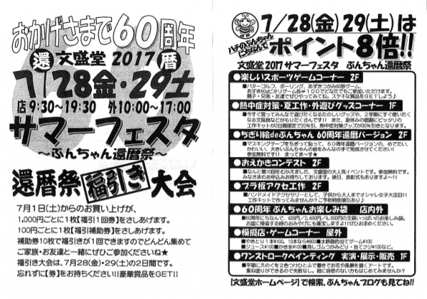 ホーム > オフマガ ニュース一覧 > 7月28日、29日、おえかき、福引、縁日盛りだくさんの創業60周年「サマーフェスティバル」を開催 相模原市・文盛堂