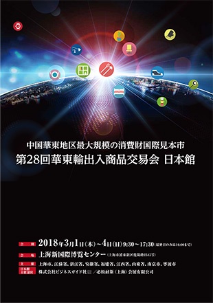 ビジネスガイド社は、2018年3月1日~4日まで上海新国際博覧センターで開催される「第28回中国華東輸出入商品交易会日本館」の主催運営を行う。