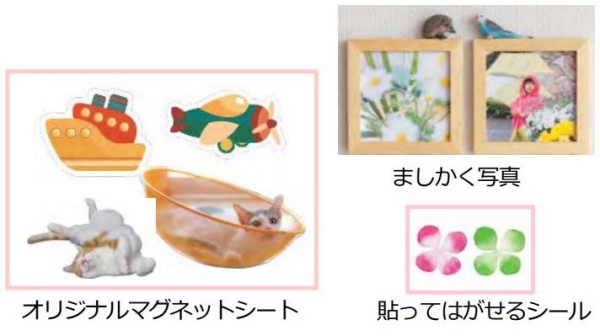 ネイルの他にも11月16日から「オリジナルマグネットシート」、「貼ってはがせるプリントシール」、「ましかく写真」用紙を発。好きな写真やイラストをプリントして、リビングの壁や冷蔵庫をデコレーション可愛いマグネットやウォールデコレーションを楽しむことができます。
