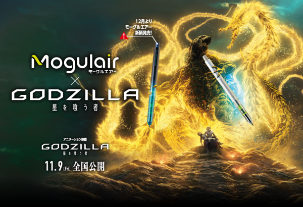 パイロットコーポレーションは、東宝のアニメ―ション映画『GODZILLA』三部作とのコラボレーション第三弾として、芯折れ防止と軽快な筆記が特長の「アクティブサスペンション」機構を搭載したシャープペンシル「モーグルエアー」とのコラボレーション『モーグルエアー vs ゴジラ』キャンペーンを2019年1月18日(金)までの間、開催。