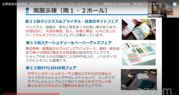 ㈱ビジネスガイド社は、10月7日(水)~9日の3日間、東京ビッグサイト(西・南展示棟)で、日本最大のパーソナルギフトと生活雑貨の国際見本市「第90回東京インターナショナル・ギフト・ショー秋2020」及び「第8回LIFE×DESIGN」、「第28回グルメ&ダイニングスタイルショー秋2020」を同時開催する。