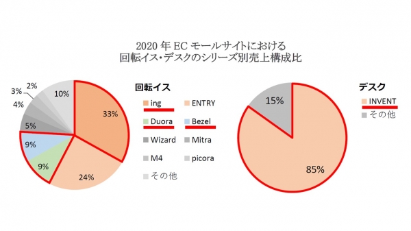 ・商品別ランキングではベスト5のうち4商品を回転イスが占める