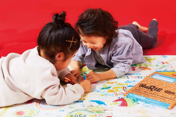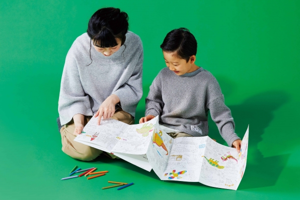 A0サイズの大きなぬりえや、2,280mm の長ーいぬりえは、おうちの床に広げたり壁に貼ったりして、家族みんなで楽しめます。色を塗りながら絵柄に隠された物語や世界の名所、面白い動物を見つけて会話を弾ませるなど、コミュニケーションツールとして最適です。