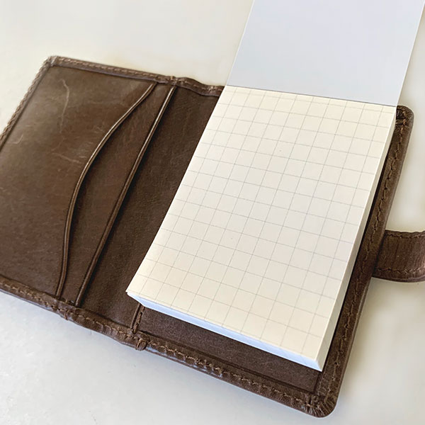 「ロロマ特製ミニメモ」は、Davinciシステム手帳のカタチをそのままミニチュア化した実際に使えるメモ帳で、贅沢にロロマレザーを使い、各パーツもロロマクラシック のデザインそのままの仕様にこだわった、システム手帳ファン必見のアイテム。