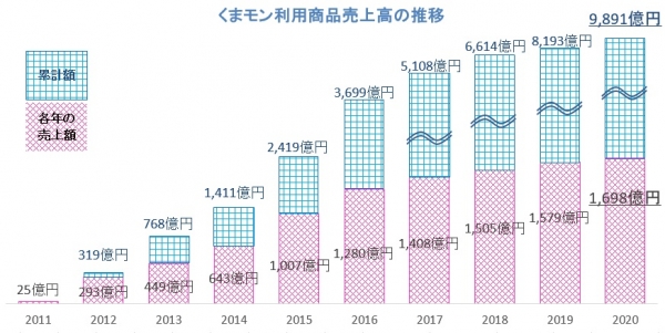 ホーム > オフマガ ニュース一覧 > デビューから10周年、前年比1.07倍売上増!多額の経済効果を発揮 2020年のくまモン利用商品年間売上高1,698億円を記録!9年連続で前年の売上高を更新