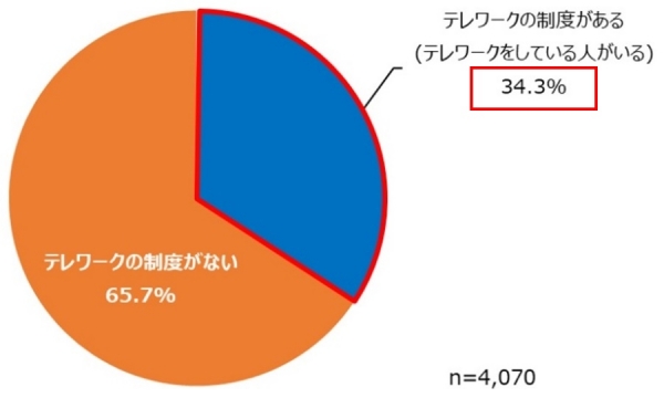 ・今回アンケート回答者による、2021年4月時点のテレワーク制度の導入率は、34.3%