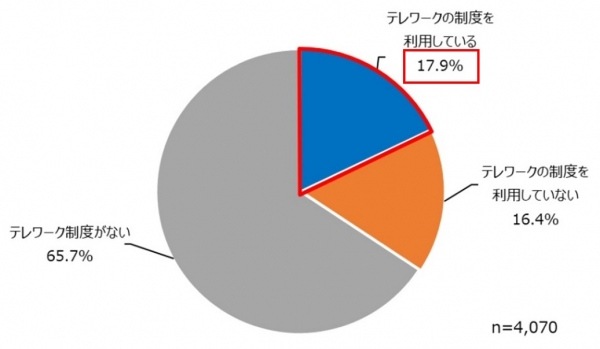 ・今回アンケート回答者による、テレワーク制度の利用率は、全数ベースで17.9%