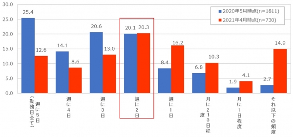 現在のテレワークの頻度を教えてください。