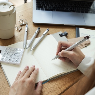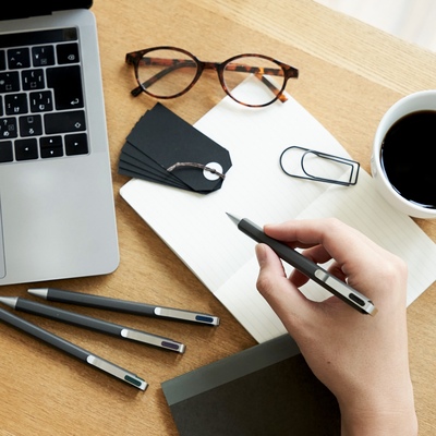 ラインアップは大きく2種類あり、ボール径0.4mmがライトグレーの軸色、ボール径0.5mmがダークグレーの軸色でそれぞれ全6色展開、そしてインキ色はピュアブラック、ナイトブラック、モカブラック、フォレストブラック、カシスブラック、ミステリアスブラックと6色の黒インキをご用意いたしました。