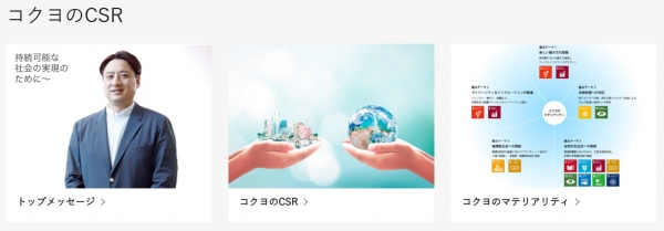 コクヨグループは、持続可能な社会の実現に向けた取り組みと社会的責任に関する情報をわかりやすく開示し、さまざまなステークホルダーの方々とのコミュニケーションを図ることを目的として、毎年「CSR報告書」を発行しています※1。(https://www.kokuyo.co.jp/csr/)