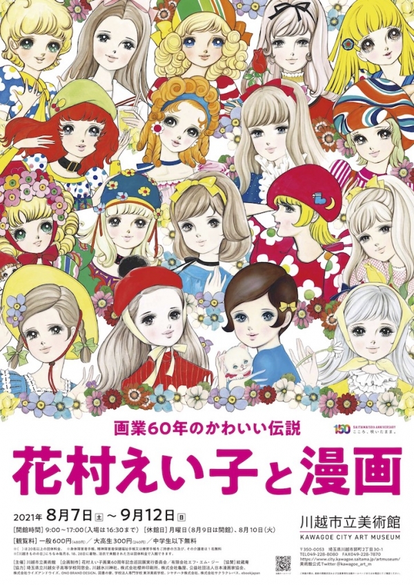 少女漫画のパイオニアとして活躍した漫画家、花村えい子の展覧会「画業60年のかわいい伝説 花村えい子と漫画」が、2021年8月7日(土)から9月12日(日)まで、埼玉県 川越市立美術館にて開催されます。2019年7月、福岡県 嘉麻市立織田廣喜美術館(福岡県)にてスタートした巡回展の2会場めとして、作家の出身地での開催となります。