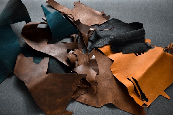 本商品に採用したリサイクルレザーは皮革製品を製造する際に出る革の端材を繊維状に粉砕し、これをラテックス樹脂と混ぜ合わせて固めてシート状にしたものです。今まで捨てられてきた貴重な革素材をアップサイクルした環境対応素材になります。40%ほど樹脂等が入っているものの、天然皮革ならではの自然の風合いを変わらず楽しむことができます。