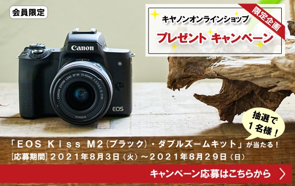 キヤノンマーケティングジャパン株式会社(代表取締役社長:足立 正親)が運営する公式通販サイト、キヤノンオンラインショップでは、小型・軽量のミラーレス一眼カメラ 「 EOS Kiss M2(ブラック)・ ダブルズームキット 」 を抽選で1名様に当たるキャンペーンを実施しています。