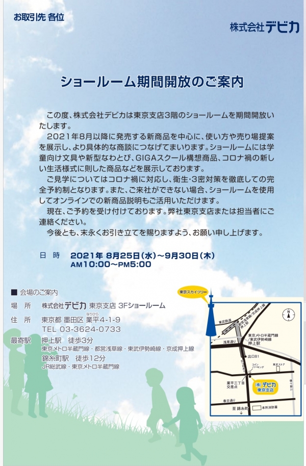 株式会社デビカは東京支店3階のショールームを8月25日から9月30日まで期間開放する。