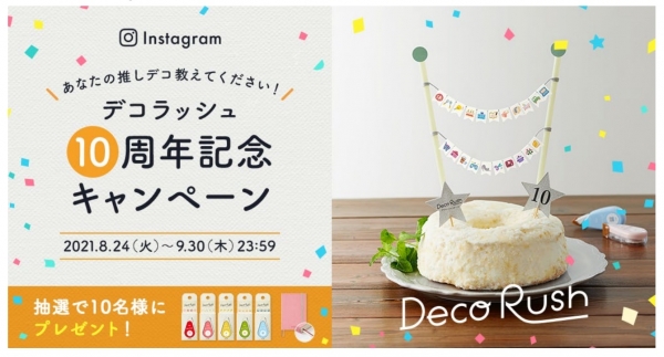 現在、プラス株式会社とのコラボレーション企画「あなたの推しデコ教えてください!デコラッシュ10 周年記念 Instagram キャンペーン」を 2021 年 9 月 30 日(木)まで実施しております。