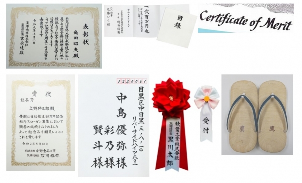 ・表彰状の名前は筆耕で、本文はオンデマンド印刷で