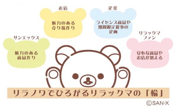 リラックマ商品を多数取り扱っている小売店や企業と共に、魅力のある売り場や商品を作り、リラックマファンへ届けることで「リラノワ」がつながります。