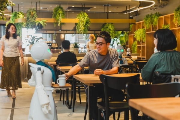 [遠隔勤務来店が可能な「分身ロボットカフェDAWN ver.β」と分身ロボットOriHime]