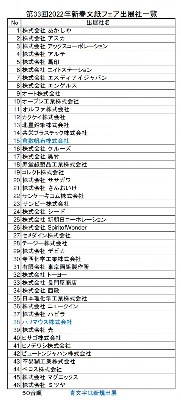 「第 33 回 2022 年新春文紙フェア」が、2022年1月13日(木)~14日(金)の1.5日間、東京・台東区の共和フォーラムで開催。