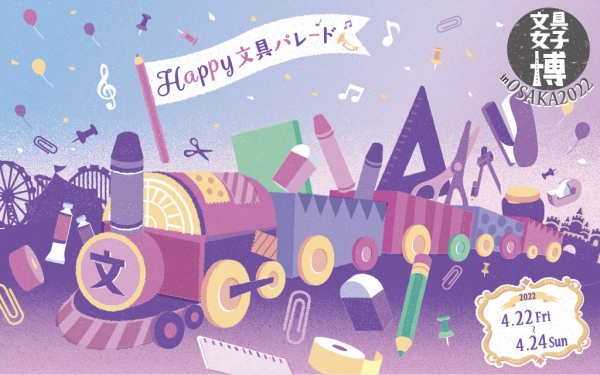 今回の「文具女子博in大阪2022」の開催テーマは、「Happy 文具パレード」。文具女子博にお越しになったお客様に、日常とは違うひとときを感じていただき、お客様の思い出に残るような場所にしたいと思っております。テーマに沿った華やかなオリジナルグッズや、各メーカー限定商品等もゲットするチャンス!