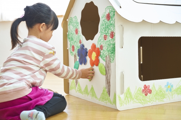 画用紙が立体に! 新素材「がようしダンボール」を使用した、描けるキッズハウス