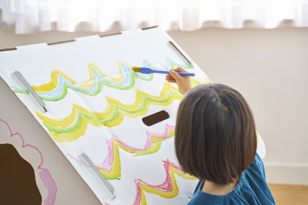丈夫な段ボールを使用しているので、組み立てた状態でのお絵描きはもちろん、描き終わったあとも遊べる耐久性を兼ね備えています。