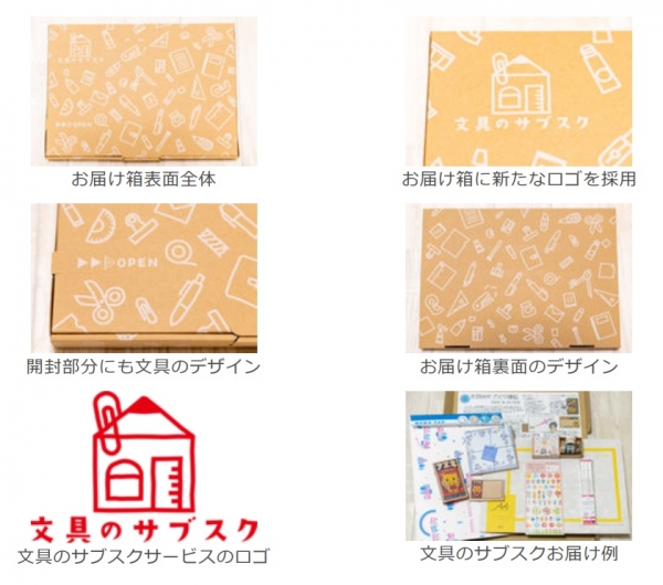従来からポストに届く発送サービスを利⽤していますが、今回、リニューアルしたお届け箱は⾊々な⽂具をデフォルメしたイラストのデザインでポストに届いた箱を⾒ただけでドキドキし、さらに、中⾝を開ける瞬間のワクワクを増幅するパッケージとなります。