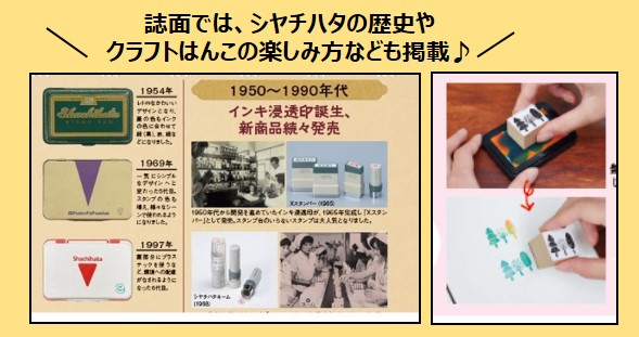 趣味の道具入れや、印鑑・通帳などの貴重品入れなど使い道は無限。誌面では、シヤチハタの歴史や人気商品の紹介、クラフトはんこの楽しみ方などを紹介しています。