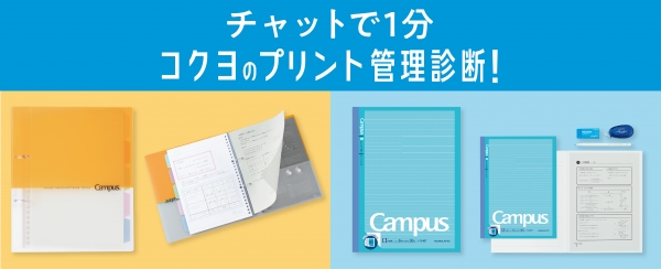応募方法:Twitterアカウント「@kokuyo_st」またはInstagramアカウント「@kokuyo_st.study」をフォローし、ハッシュタグ「#コクヨのマナビ」「#プリント管理診断」をつけてプリント管理診断の感想を投稿