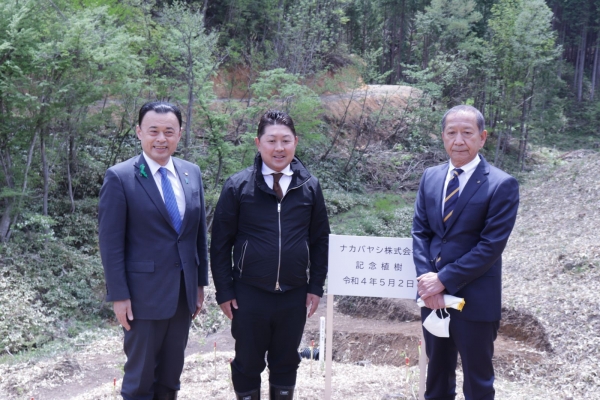 5月2日には、島根県雲南市で島根県丸山知事立ち合いのもと、当社代表取締役会長 辻村肇・株式会社田部 代表取締役 田部長右衛門氏が参加して調印式並びに記念植樹を実施しました。