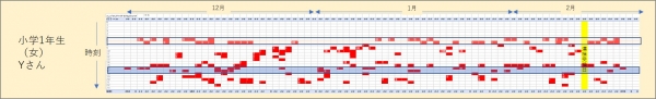 従来学習習慣があまりなかったYさんだが、この取り組みにより1月後半から、朝の学習時間の習慣化が出来つつあり、検定終了後も継続していることがグラフから読み取れる。