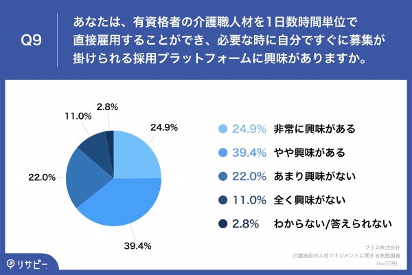 今回は、介護施設の経営者・施設長・ホーム長・管理者109名に対し、介護施設の人材マネジメントに関する実態調査を実施しました。