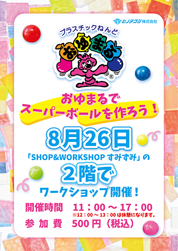 ヒノデワシは2022年8月26日(金)、東京・墨田区の東京ミズマチ内「SHOP&WORKSHOP すみずみ」で「おゆまるでスーパーボール」を作るワークショップを開催します!