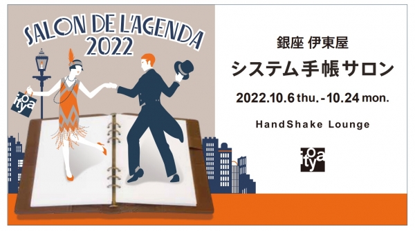 今年も G.Itoya10 階 HandShake Lounge にて、第 6 回の「銀座 伊東屋 システム手帳サロン」を開催いたします。期間は 2022 年 10 月 6 日 (木) ~ 24 日 (月) までの 19 日間。各メーカーより、伊東屋限定品をはじめ 2022 年の新作から定番品まで、手帳本体約 200 種、リフィル約 1000 種が一堂に並びます。期間中は各メーカーによるイベントも開催いたします。