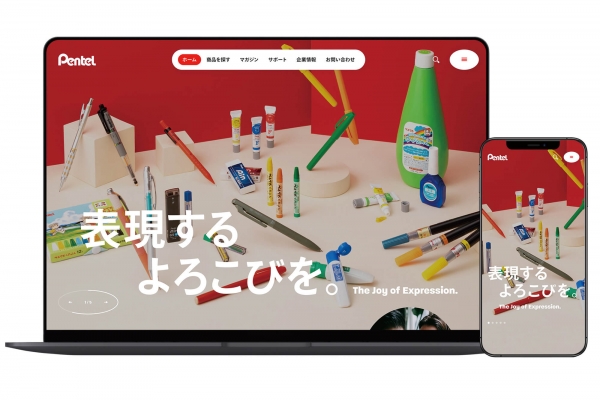 画面サイズに応じて表示を最適化するレスポンシブデザインに対応し、タブレットやスマートフォンなどのさまざまなデバイスでの視認性、操作性を向上しています。コーポレートカラーである赤を基調に、機能的かつ親しみやすく、表現することの楽しさを感じられる、ぺんてるらしいデザインに仕上げました。