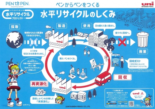 ホーム > オフマガ ニュース一覧 > 三菱鉛筆、使用済みのプラスチック製ペンの「水平リサイクル」実証プロジェクトを開始