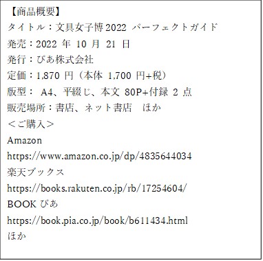 2022年10月21日、ぴあ株式会社より『文具女子博2022 パーフェクトガイド』が発売になりました。