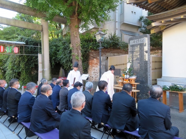 修祓の儀、降神の儀、献せんの儀、祝詞奉上のあと玉串拝奠し文具産業の発展を祈った。